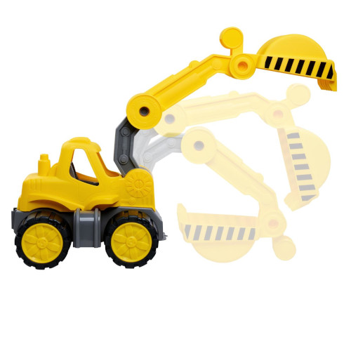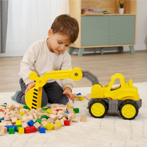 The large shovel of the little yellow excavator makes it easy to transport building and play materials from point A to point B. Once at the destination, simply turn the shovel upside down and empty the contents onto the ground! Visually, the hardworking excavator fits perfectly into the design of the Power Worker line. Useful construction site accessories for little builders aged 2 and up.