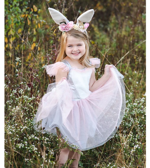 Celebrate spring in the Woodland Bunny Dress & Headband set—soft fur bodice, pink tulle skirt, bunny tail, and tall ears for the perfect playful look.