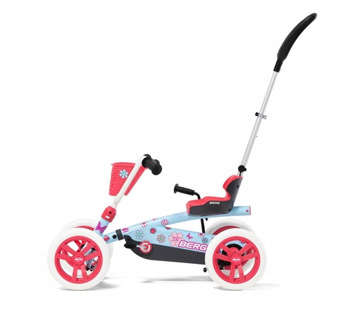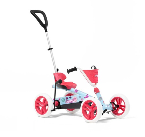 Fjórhjólið er með stillanlegri foreldrastöng til að hjálpa barninu meðan það er að læra að hjóla. Einfalt að taka handfangið af þegar barnið er tilbúið að hjóla sjálft. Einfalt að aftengja fótstigin, hafa það fríhjólandi, þannig að barnið geti hvílt fætur á því á meðan því er ýtt áfram með handfanginu og þá hreyfast ekki pedalarnir. Einnig er hægt að festa stýrið.