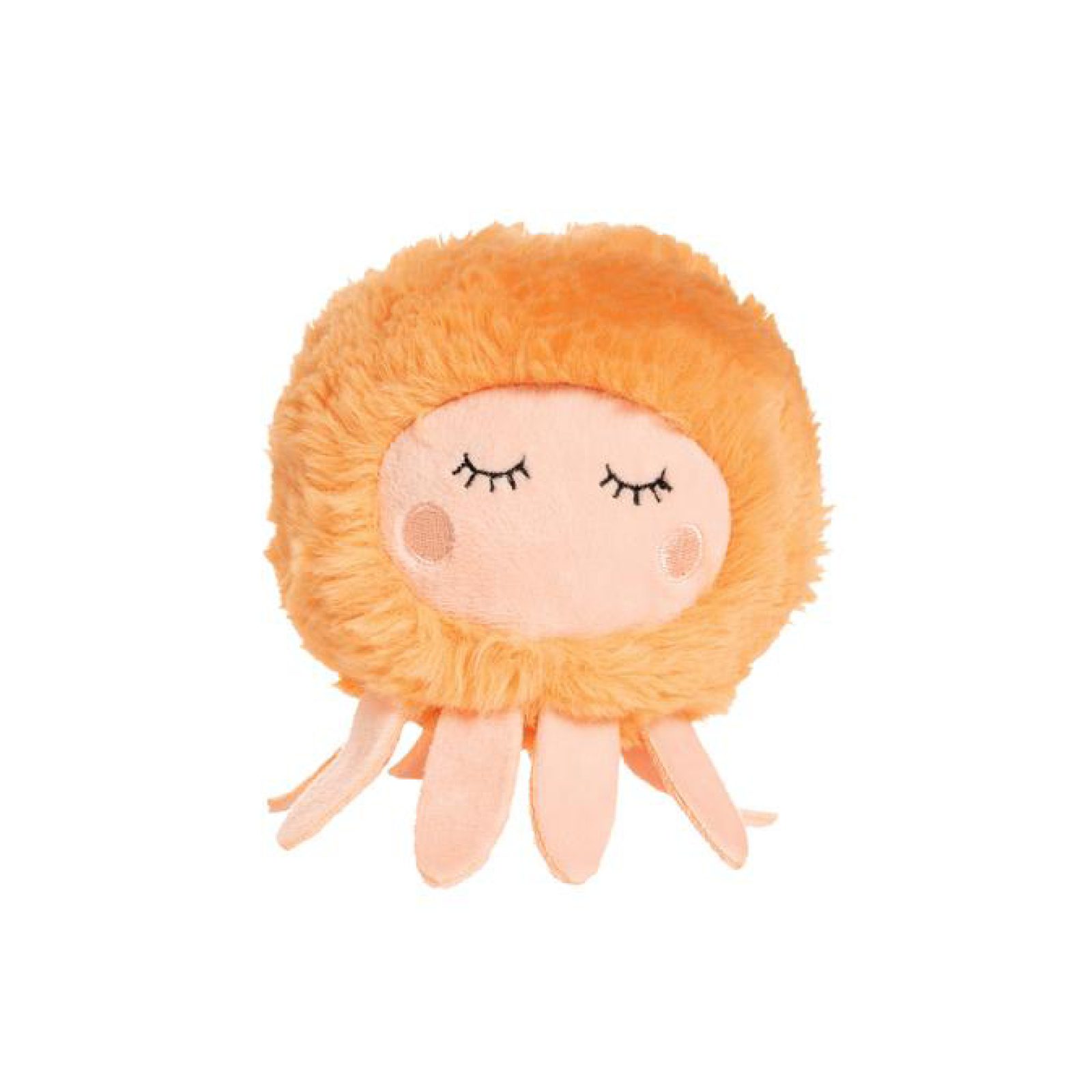 Þessi mjúki og kúttlegi marglyttu bangsi er með kjarna úr svampi sem gott er að kreista. Svampurinn í bangsanum þenst hægt og rólega til baka í sama kringlótta formið eftir að búið er að kreista hann.