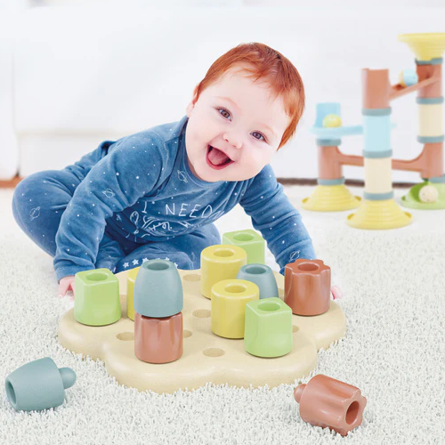 Bio-plastic game dedicated to children. Equipped with large pegs to develop fine drive and coordination eye-hand.