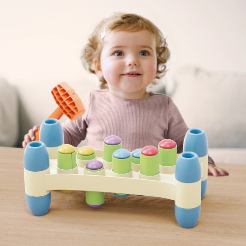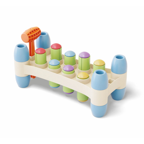 Have fun hitting the colourful pegs with the hammer and when you have finished turn the game upside down and start again.