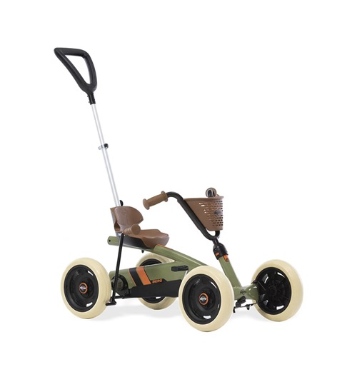 Fjórhjólið er með stillanlegri foreldrastöng til að hjálpa barninu meðan það er að læra að hjóla. Einfalt að taka handfangið af þegar barnið er tilbúið að hjóla sjálft. Einfalt að aftengja fótstigin, hafa það fríhjólandi, þannig að barnið geti hvílt fætur á því á meðan því er ýtt áfram með handfanginu og þá hreyfast ekki pedalarnir. Einnig er hægt að festa stýrið.
