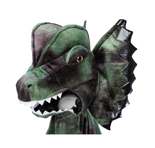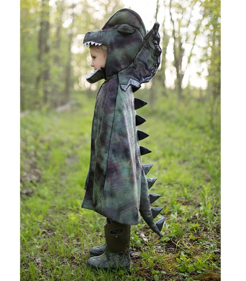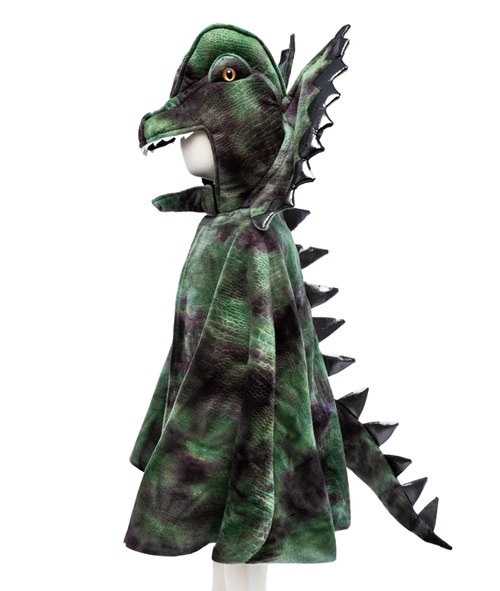 Add a new prehistoric pal with this adorable dinosaur cape! Featuring green, grey, and purple tie-dye fabric, metallic spikes, a removable mouthpiece, and matching claws for roaring fun.
