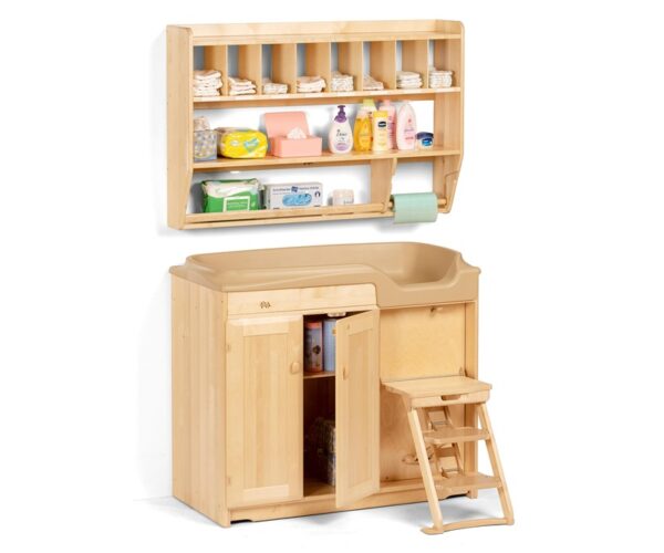 Skiptiborðið er með hjólum sem auðvelt er að fela niður og gera borðið kyrrstætt.