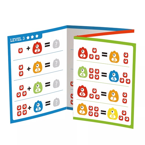 Þrjú erfiðleikastig. Leyfðu barninu að takast á við ýmsar áskoranir í rökhugsun og hjálpaðu barni þínu að læra grunnreikning eins og samlagningu og frádrátt. Tölfræðileg vitund. Mikilvægt er að kenna börnum rökhugsun með tölum og öðrum stærðfræðilegum hugtökum, að beita þeim í ýmsum samhengi og að leysa margvísleg verkefni.  Stærðfræðileikfang (STEM) fyrir börn frá 3 ára aldri. Fullkomið fyrir börn til að byrja snemma að þróa tölulega og stærðfræðilega færni, auk þess að efla framúrskarandi hreyfifærni og einbeitingu.